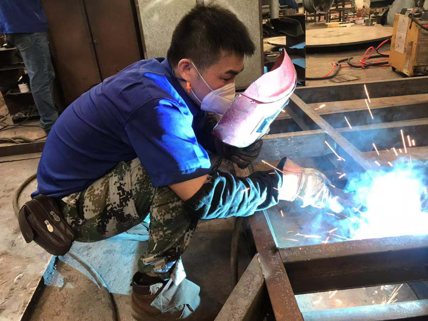 東通員工頂著高溫,